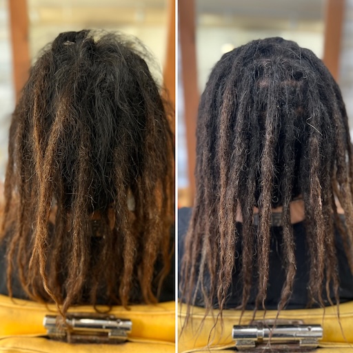 何度もインターロックを繰り返すと、修正が難しくなり、ドレッドロックスというよりもブレイズのような質感になってしまうことがあります😥
